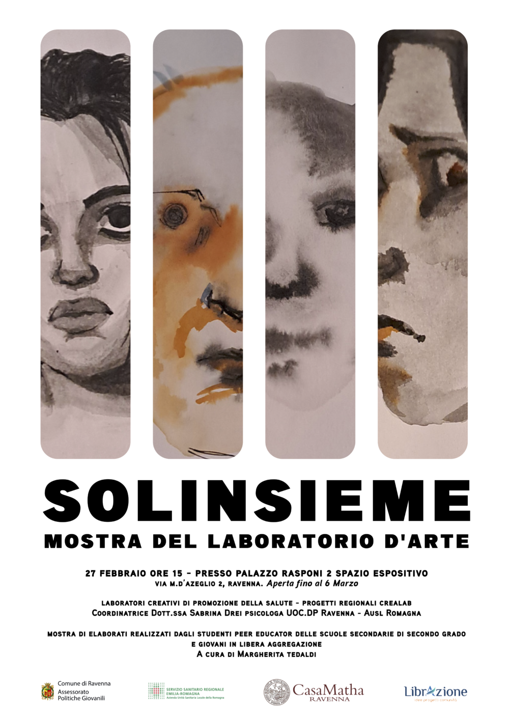 La Mostra d’Arte “Solinsieme” è parte di un articolato lavoro di progettazione rivolto agli studenti Peer Educator e ai giovani in libera aggregazione del territorio ravennate (14–25 anni), nell’ambito dei Progetti di Promozione della Salute e prevenzione dei comportamenti a rischio promossi dal SERD di Ravenna – Equipe Scuola e Territorio.